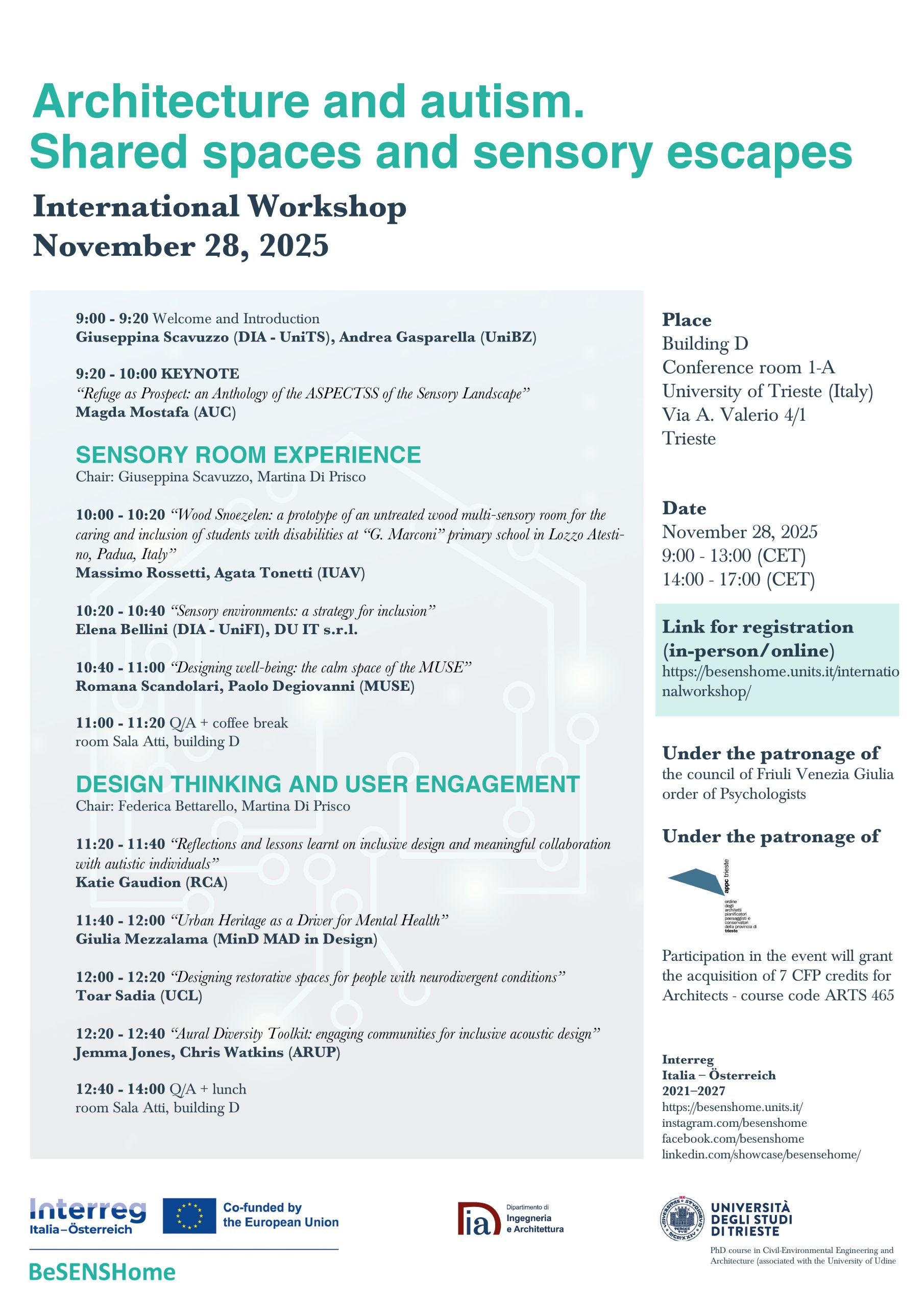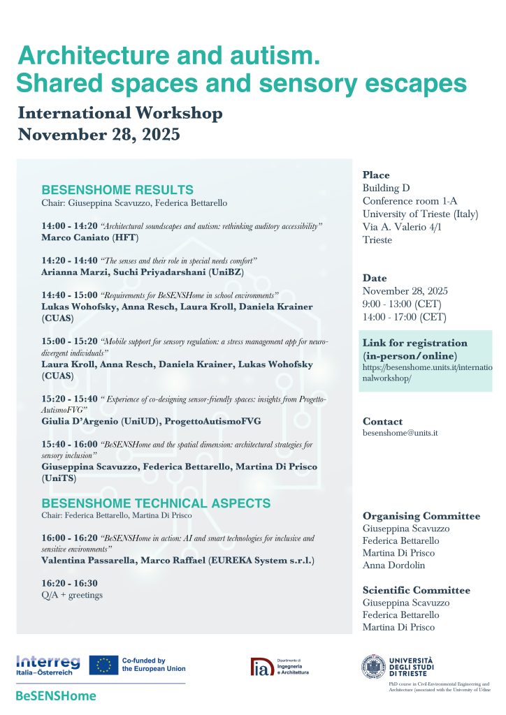 28/11/2025 International Workshop “Architecture and autism.Shared spaces and sensory escapes” c/o UNITS (TS)